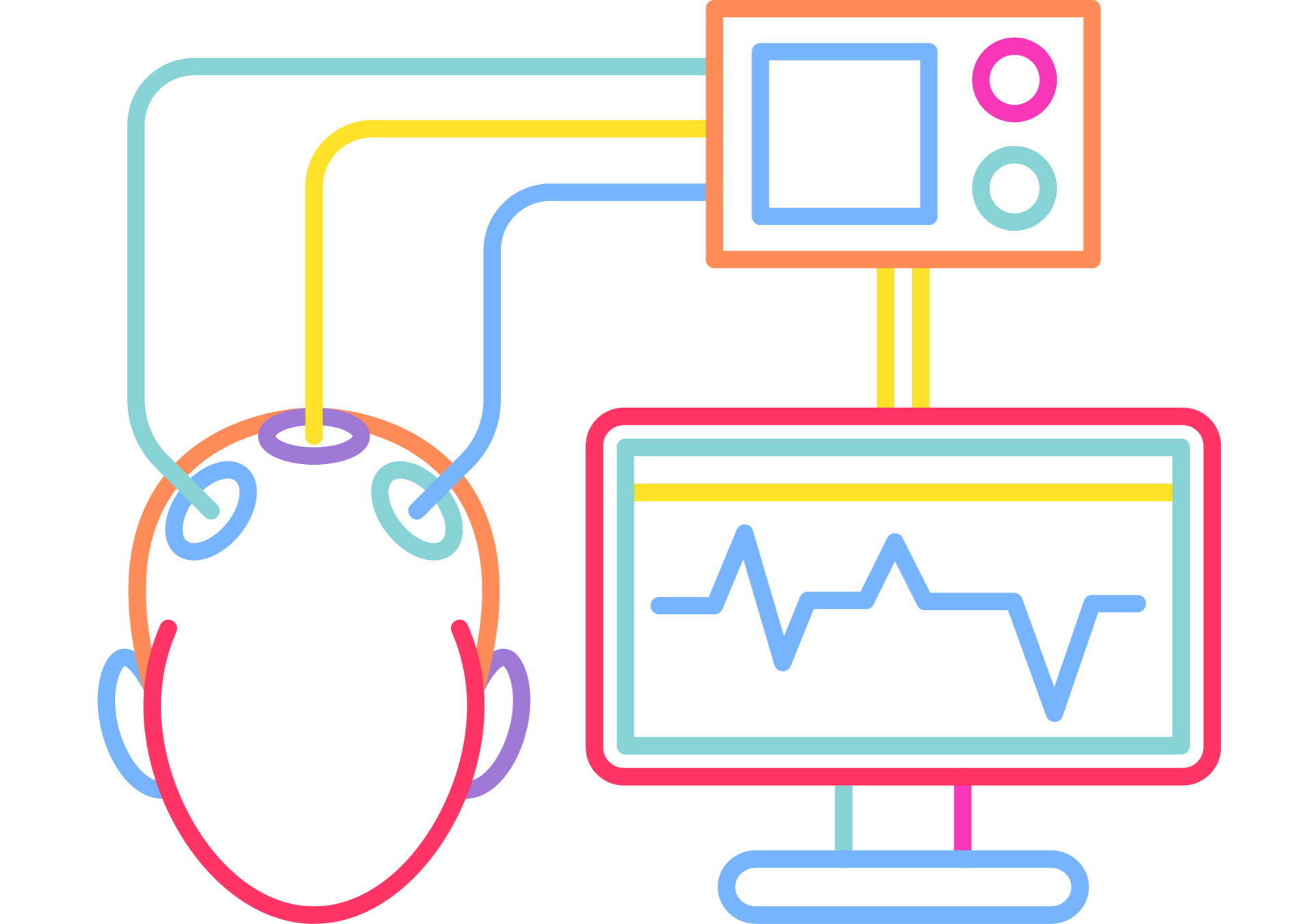În timpul unei ședințe, activitatea electrică a creierului tău este monitorizată cu ajutorul unor senzori plasați pe scalp.